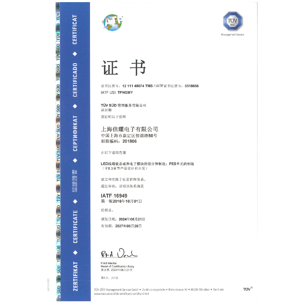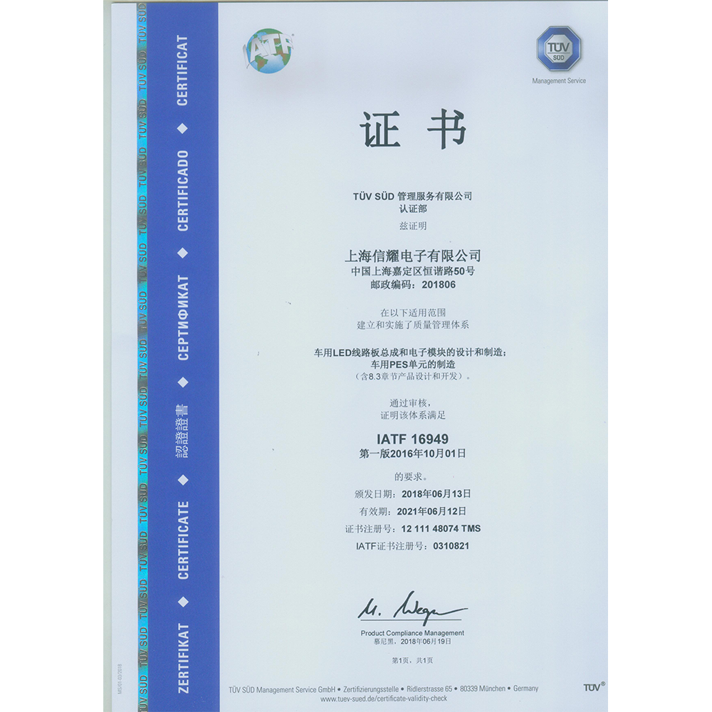 公司建有CNAS認證的電磁兼容和環境實驗室,擁有LUMILEDS授權認可的車用LED封裝工廠,通過ASPICE CL3汽車軟件過程改進及能力認證,質量管理體系IATF16949認證,環境管理體系IS0140001認證、職業健康安全管理體系ISO45001認證等。